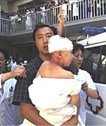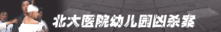 北京大学第一医院幼儿园十五名儿童和三名教师二00四年八月四日上午九时左右在幼儿园被人持菜刀砍伤。其中一名重伤儿童经抢救无效死亡。犯罪嫌疑人是该幼儿园一名五十一岁的临时工。北京警方透露,凶嫌有精神病史