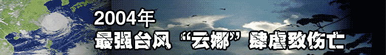 | 二○○四年第十四号台风“云娜”于八月十二日晚间八时许在浙江台州温岭石塘镇登陆。这是这一年以来四个在中国沿海登陆的热带风暴中强度最强的一个,也是自一九九七年以来对浙江影响最严重的台风。截至登陆当晚二 |