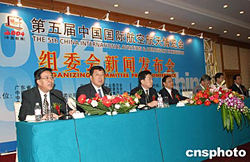 八月二十日,中国航展组委会在北京举行的新闻发布会上宣布:第五届中国国际航空航天博览会将十一月一日在广东省珠海市举行。届时,还将举办“二零零四中国国际航空航天高峰论坛。中新社记者:史利