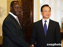 温家宝指出,中国与中非的经贸合作仍有潜力,双方在努力扩大贸易的同时,应进一步加强经济技术合作,把农业、基础设施和人力资源开发作为未来合作的重点。中国政府将继续鼓励中国企业赴中非参与中非的经济建设,开展互利合作。