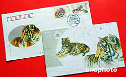 北京市邮票公司为配合国家邮政局于八月二十三日发行《华南虎》特种邮票(一套二枚),特设计印制了《华南虎》特种邮票的首日封、邮折、等邮品,将于八月二十三日与邮票同日发行。这两枚邮票的名称均为华南虎,面值分别为八十分与二元。华南虎属极度濒危动物,其野生种群不足为三十只,在中国动物园内也只有五十只,与大熊猫同被列入国际自然与自然保护联盟(IUCN)十大濒危物种之列。中新社记者:邹宪