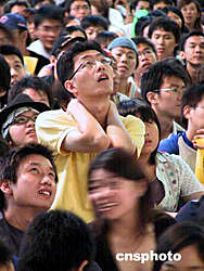 中国台北队在雅典奥运会棒球赛中3:4惜败日本队,台北球迷为之惋惜。中新社记者:曾嘉