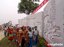 八月二十一日,邓小平发动领导百色起义的地方广西百色市举行活动纪念邓小平百年诞辰,邓小平手迹碑林园当日落成揭幕。图为少数民族同胞观看碑林,纪念邓小平百年诞辰。
