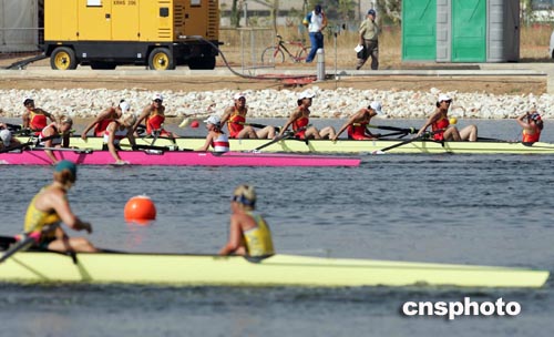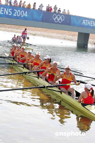 当地时间八月二十二日,参加雅典奥运女子八人单桨有舵手赛艇比赛的中国队获得第四名。中新社记者:毛建军