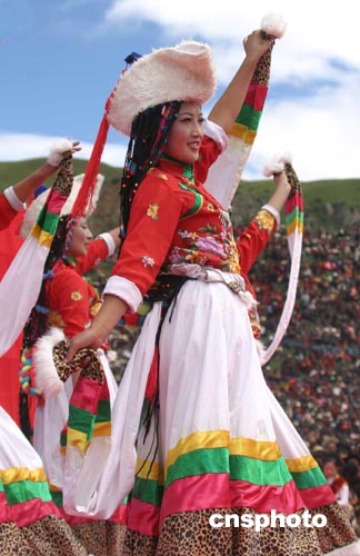 身披价值上百万饰品的专业藏族服饰表演队引来全场喝彩。
