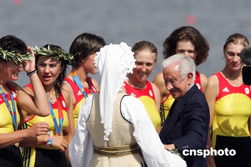 萨马兰奇出席雅典奥运赛艇颁奖仪式
