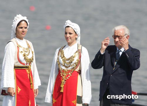 当地时间八月二十二日,国际奥委会前主席萨马兰奇出席赛艇比赛颁奖仪式。中新社记者:毛建军