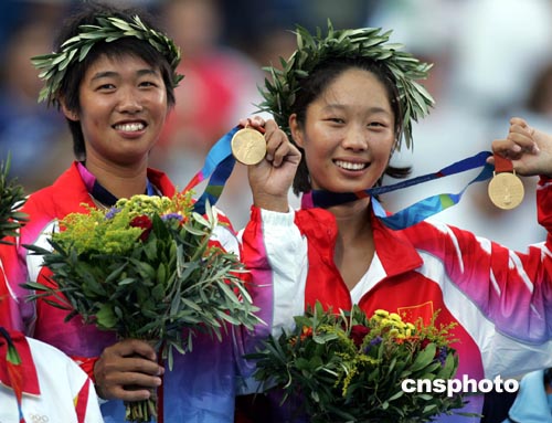 中新社雅典八月二十二日电 不鸣则已,一鸣惊人!中国姑娘李婷/孙甜甜在今天雅典奥运网球女双决赛中,以令人信服的实力,直落两局击溃西班牙组合马丁内斯/帕斯奎尔,勇夺奥运网球女双金牌。