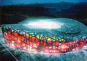 此时,作为2008年北京奥运会主会场的国家体育场,已在京北破土动工7个月,有1800多根长38.3米、直径近1米的桩已被打入地下,按原来的计划,到2006年底,这里将搭建出一个巨大的白色“鸟巢”。