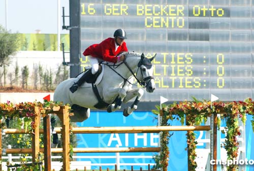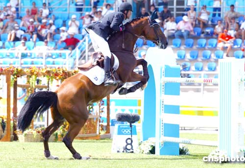 图为当地时间22举行的马术障碍赛个人首次资格赛中各参赛队员的出色表演。