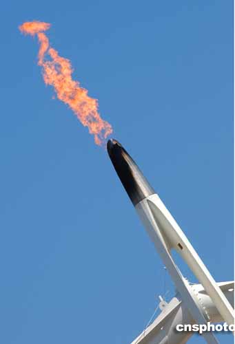 图为雅典奥林匹克运动场内的奥运火炬。