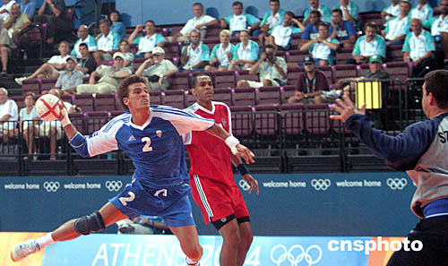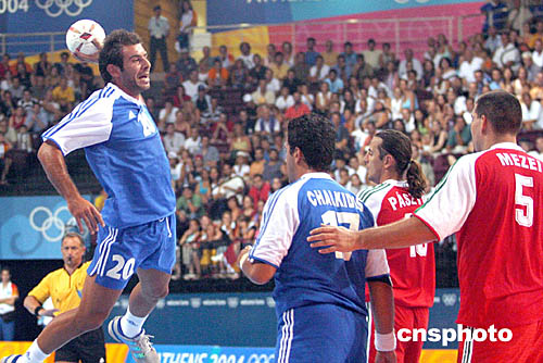 在当地时间8月22日举行的男子手球比赛中,希腊队员奋力拼搏,但难逃失败命运。最后以22比26不敌匈牙利队。