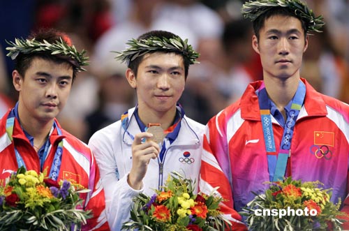 王皓不敌韩国选手柳承敏 痛失奥运乒乓男单金牌