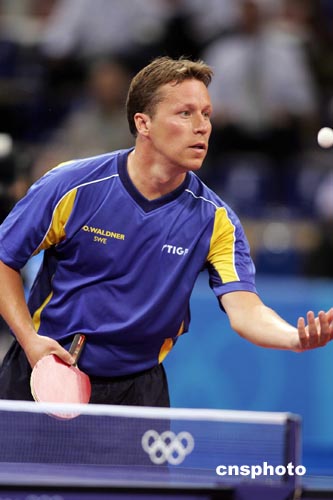 中国选手王励勤战胜瑞典老将瓦尔德内尔获得铜牌。