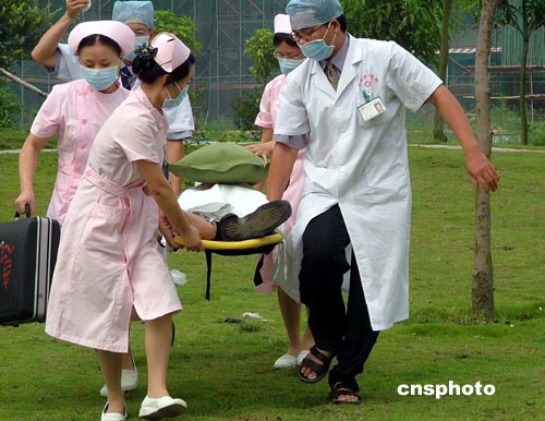 广东茂名八月二十四日举行半小时的防空警报试鸣及防空袭演练。上午九时三十分防空警报响彻市区上空,随后消防、供水、电力抢修、医疗救护、治安执勤、交通运输等部门立即出动并组织人群疏散演练。作者:杨益全
