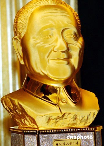 为纪念世纪伟人、中国改革开放的总设计师邓小平先生百年诞辰,“金至尊”特别动员三十多人精心铸造“邓小平金至尊美钻金像”,八月二十四日在香港举行揭幕仪式,该像以2.8公斤黄金,5000颗总重量达100卡拉钻石铸造而成,总价值超过港币一百万。作者:钱兴强