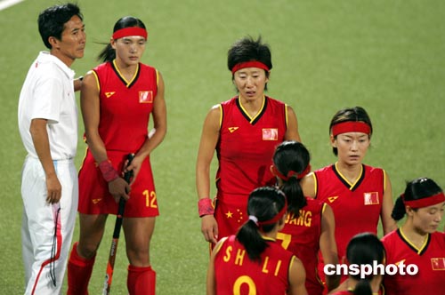 雅典当地时间8月24日晚,奥运女子曲棍球半决赛在中国与德国队之间举行,中国女曲在全场占优的形势下有多次错失破门良机,最终在点球大战中以3比4负于德国,无缘决赛。中新社记者:任晨鸣