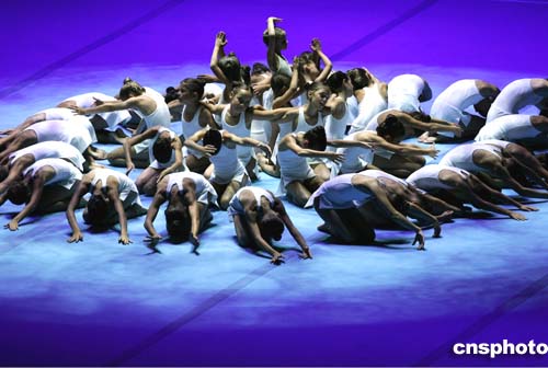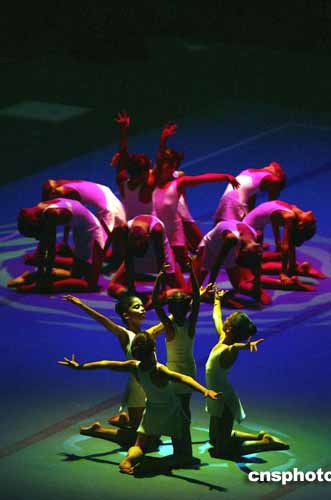 图为当地时间24日,在雅典体操展览馆里孩子们的精彩表演。