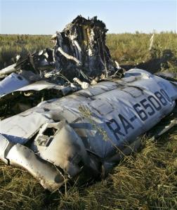 俄图-134坠毁现场的飞机残骸。(美联图)