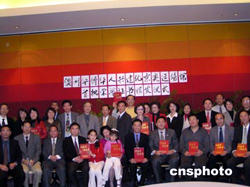北京市海外联谊会会长、北京华侨华人共建奥运场馆副主任尤蓝田(前排左6)、中国驻悉尼代总领事杜慰(前排左4)和悉尼华人社团领袖,8月24日晚向澳大利亚华人华侨共建2008北京奥运场馆“水立方”的第一批82名捐助者颁发荣誉证书并合影留念。据悉,海外华侨华人已经认捐7500万美元,实际到帐1500万美元。她代表北京市政府对华人华侨的大力支持表示感谢。作者:刘雨生