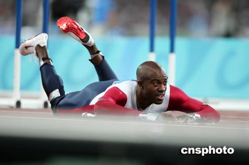 中新社雅典八月二十六日电 二十五日晚,世界男子一百一十米跨栏名将、美国选手阿兰·约翰逊没能像往常一样第一个昂首冲过终点,而是沮丧地趴在跑道上,看着对手跑过了终点。