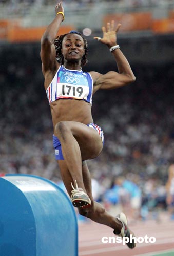 当地时间八月二十五日晚,在雅典奥运会田径女子跳远预赛中,世界冠军、法国选手巴贝尔在预赛中的最好成绩仅为六米三七,无缘决赛。中新社记者:毛建军