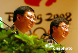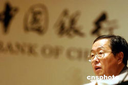 图为中国银行副董事长、行长李礼辉(左)、行长助理朱民就有关事宜答记者问。