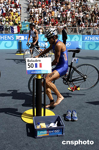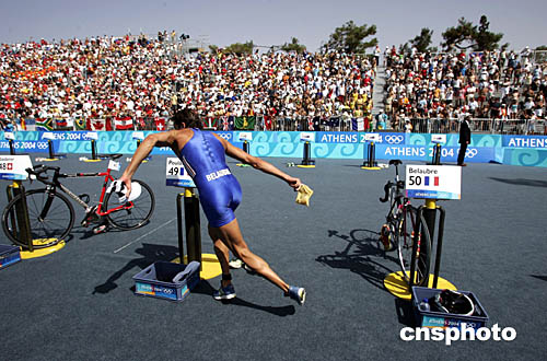图为在当地时间8月26日举行的男子三项全能比赛中的一幕。