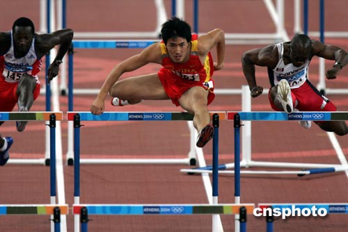 当地时间8月26日晚,雅典奥运会田径比赛继续进行,夺标大热门、中国的刘翔在110米栏半决赛中以13秒18的成绩轻松晋级决赛。在参加决赛的八名选手中,刘翔的预赛成绩名列第四,将在第六道参加决赛。中新社记者:任晨鸣