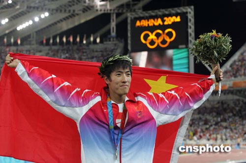 中新社雅典八月二十七日电(记者 沈晨 宋方灿)上海小将刘翔今晚在奥运会男子一百一十米栏决赛中以十二秒九一勇夺冠军,平了该项目的世界纪录并创造新的奥运会纪录,成为首位在奥运会田径短距离竞技项目中夺冠的中国运动员。