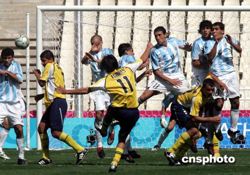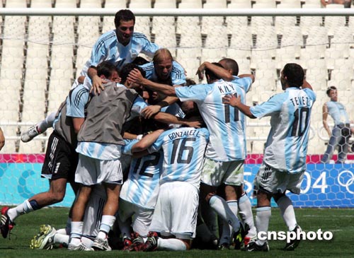 当地时间8月28日中午,雅典奥运会男子足球在主体育场举行。实力强大的世界劲旅阿根廷队以1比0击败同是南美的巴拉圭队,获得冠军。在世界杯、南美杯等重大赛事上屡屡遭受败绩的阿根廷队,终于获得了一项被职业足球界视为“鸡肋”的冠军。阿根廷队10号卡洛斯在上半场攻入全场唯一的进球,之后双方都有多次机会改写比分,但都无功而返;巴拉圭队有两名球员被红牌罚下;获胜后的阿根廷球队在蓝天白云下,在奥运会主火炬的映照下狂欢庆祝。中新社记者:任晨鸣