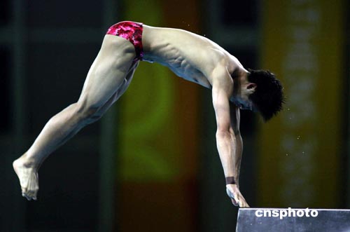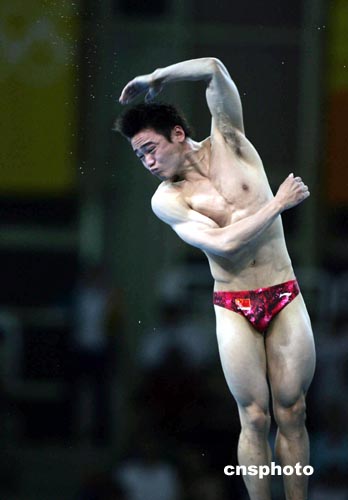 第一个动作,四人之间就展开了激烈的争夺。但技高一筹的田亮将难度系数为三点四的动作发挥得淋漓尽致,获得九十五点八八的高分,他也因此占据了榜首的位置,领先排名第二的德斯帕蒂九点零六分,胡佳、赫尔姆分列第三和第四。