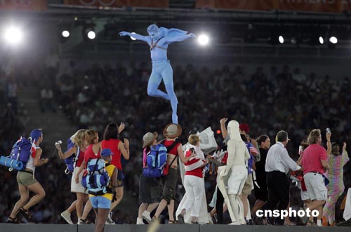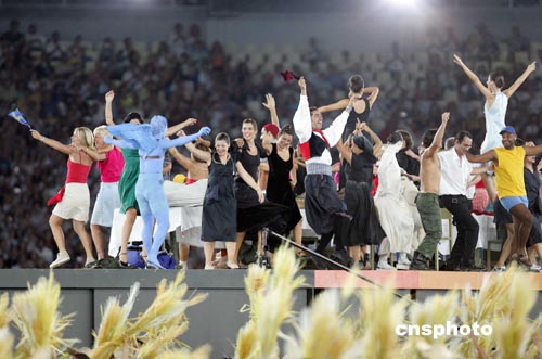 当地时间八月二十九日,第二十八届奥林匹克运动会在雅典圆满结束。图为闭幕式上的文艺表演。中新社记者:毛建军