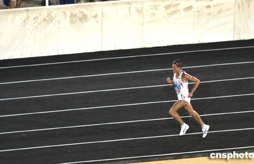 图为在当地时间29日进行的男子马拉松比赛中,获得冠军的意大利选手巴尔蒂尼。