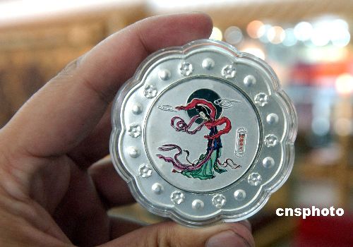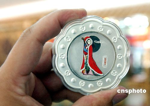 8月30日,郑州一家精品礼品店的工作人员在展示一款刚刚上市的纯银月饼。这种月饼和普通月饼大小相当,但是用的材料却是纯银,上而有彩色的嫦娥奔月等图案,一套共5枚。作者:马健