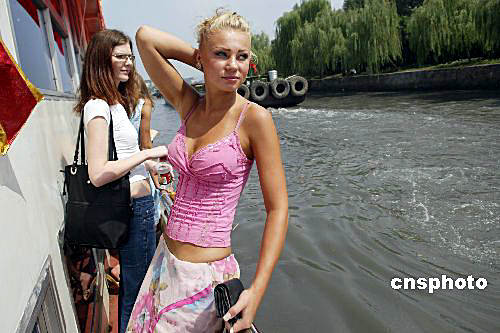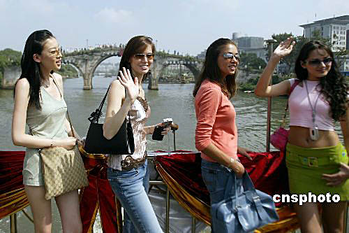 世界模特大赛参赛佳丽游览杭州 参加世界模特大赛的选手乘船沿运河游览