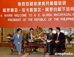 九月一日上午菲律宾总统阿罗约乘专机抵达广州,开始其就任总统以来的第三次访华之旅。广东省省长黄华华在广州白天鹅宾馆会见了来访的阿罗约总统一行。双方就促进菲律宾与广东省的经贸合作交换了意见。作者:罗仰明