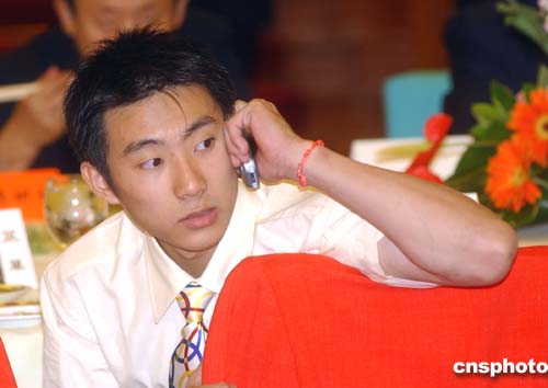 九月二日晚,中共中央办公厅、国务院办公厅在北京人民大会堂宴会厅举行招待会,欢迎载誉归来的第28届奥运会中国体育代表团。图为体操奥运冠军滕海斌在招待会上。中新社记者:武仲林