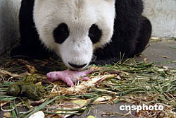据了解,今年八月刚满五岁的“华美”一九九九年出生于美国圣地亚哥动物园,今年二月十三日回到四川卧龙定居,它是采用人工授精技术在美国出生并存活的第一只熊猫幼仔。今年四月下旬,已是个“大姑娘”的“华美”发情后,专家们特地为“华美”找了个“如意郎君”大熊猫“灵灵”。五月二日,这两只大熊猫成功地实现了本交。为增加“华美”受孕的成功机率,科研人员在本交后的几天里又对她进行了四次人工授精。“华美”终于成功怀孕产仔。