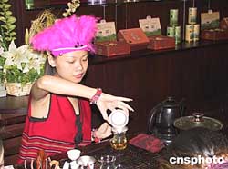 台湾高山族姑娘展示茶艺文化。作者:王东明