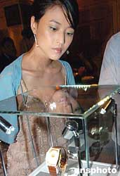 香港影星周海湄在发布会上观看瑞士新款名表系列展示。 作者:钱兴强