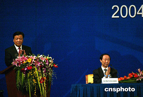 中共中央书记处书记刘云山(左)、中共中央对外联络部部长王家瑞出席第三届亚洲政党国际会议闭幕式。