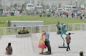 5日,第七届中国长春国际雕塑作品邀请展、全国十届美展·雕塑展同时在长春雕塑公园揭幕。雕塑公园今日也向市民免费开放。