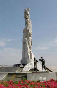 第七届中国长春国际雕塑作品邀请展今日长春揭幕。图为雕塑展的主题雕塑“和平·友谊·春天”。