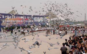 放飞和平鸽 长春国际雕塑展今日开展(图)