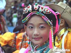 图:藏民在盛大民间活动中展示当地藏族服饰