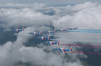 每年7月14日法国国庆日的巴黎上空、著名的勒芒24小时汽车大将赛、法国网球公开赛和一级方程式赛车场的上空,都能看到法兰西巡逻兵8机编队拉出的红白蓝三色烟迹。它几乎已经成了法国重大场合不可缺少的仪仗队,是法国的空中亲善大使。