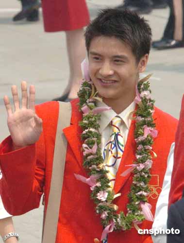 图:中国跳水名将田亮在欢迎仪式上