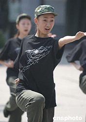 九月六日,为纪念现代芭蕾舞剧《红色娘子军》演出四十周年,中芭舞团特组织八十名演职员参加“重走娘子军之路”的学军活动。青春靓丽的孟宁宁将在十月八日出演新版舞剧《娘子军》的主角吴琼花。中新社记者:廖文静