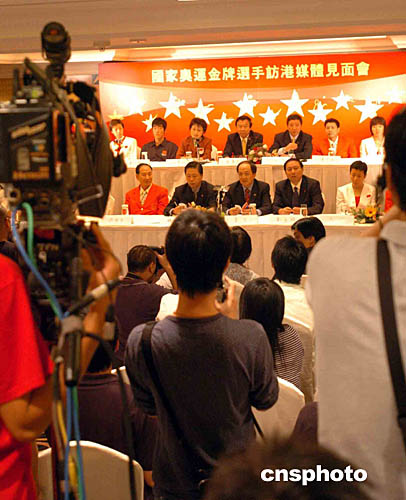 马不停蹄的金牌选手们,下午在其入住的酒店安顿不久,便出席媒体见面会。代表团团长、国家体育总局局长袁伟民表示,金牌运动员访港已成惯例,他在雅典奥运结束回国后,首先想到的便是要到港澳,与同胞分享赢取金牌的喜悦。他说,香港市民向来对国家运动员十分支持,今次运动员来港的表演,门票亦迅即售罄,反映港人的爱国热情,令他非常感动。